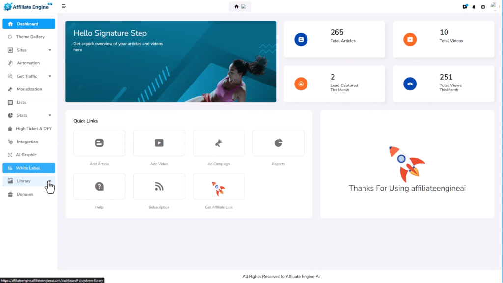 The Reseller OTO allows you to sell Affiliate Engine AI as your own product and keep 100% of the profits. This is a powerful business model for those looking to create their own software business without the development costs. It typically includes: